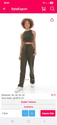 Velkommen til Byte Export, din ultimate digitale møteplass for internasjonal engrosmote. Denne innovative plattformen er skreddersydd for å bygge bro mellom anerkjente tyrkiske produsenter, leverandører og merkevarer med engroskjøpere over hele verden. Oppdag en sømløs vei til å drive handel, der kvalitet og effektivitet står i sentrum for hver transaksjon. Byte Export forenkler den komplekse verdenen av B2B-mote, og skaper verdifulle forbindelser som driver vekst og ekspansjon.