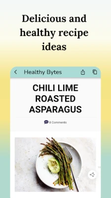 Healthy Bytes strekker seg langt utover det grunnleggende. Utforsk lenker til pålitelige, lettforståelige artikler og videoer, samt en samling av deilige og sunne oppskrifter. Tilpass din læringsreise ved å velge emner du ønsker å følge, lagre favorittbitene dine for fremtidig referanse, og del verdifull innsikt med familie og venner. Gjør Healthy Bytes til din faste kilde for kunnskap om ernæring og forebyggende helse. Start reisen mot en sunnere og mer informert deg i dag!
