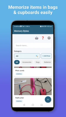 Memory Bytes er en intuitiv app for personlig oversikt over eiendeler. Hold enkelt orden på alt du eier og husk hvor du oppbevarer det. Finn tingene dine umiddelbart når du trenger dem, uten stress eller leting.