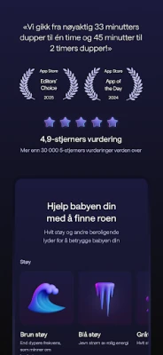 For å skape det ultimate sovemiljøet inkluderer Napper et bredt utvalg av beroligende søvnlyder, fra mild hvit støy til vuggesanger og naturlyder, nøye utvalgt for å fremme fredfull og dyp søvn. For den nysgjerrige forelder, gir en omfattende, vitenskapsbasert artikkelserie dyp innsikt i søvnens mekanismer, hvordan man etablerer et optimalt søvnmiljø og strategier for å berolige en urolig baby. Med lettleste diagrammer over trender og statistikk kan du enkelt identifisere mønstre i babyens søvn, mating og våkentid, noe som gir deg verdifull innsikt til å optimalisere rutinen.
